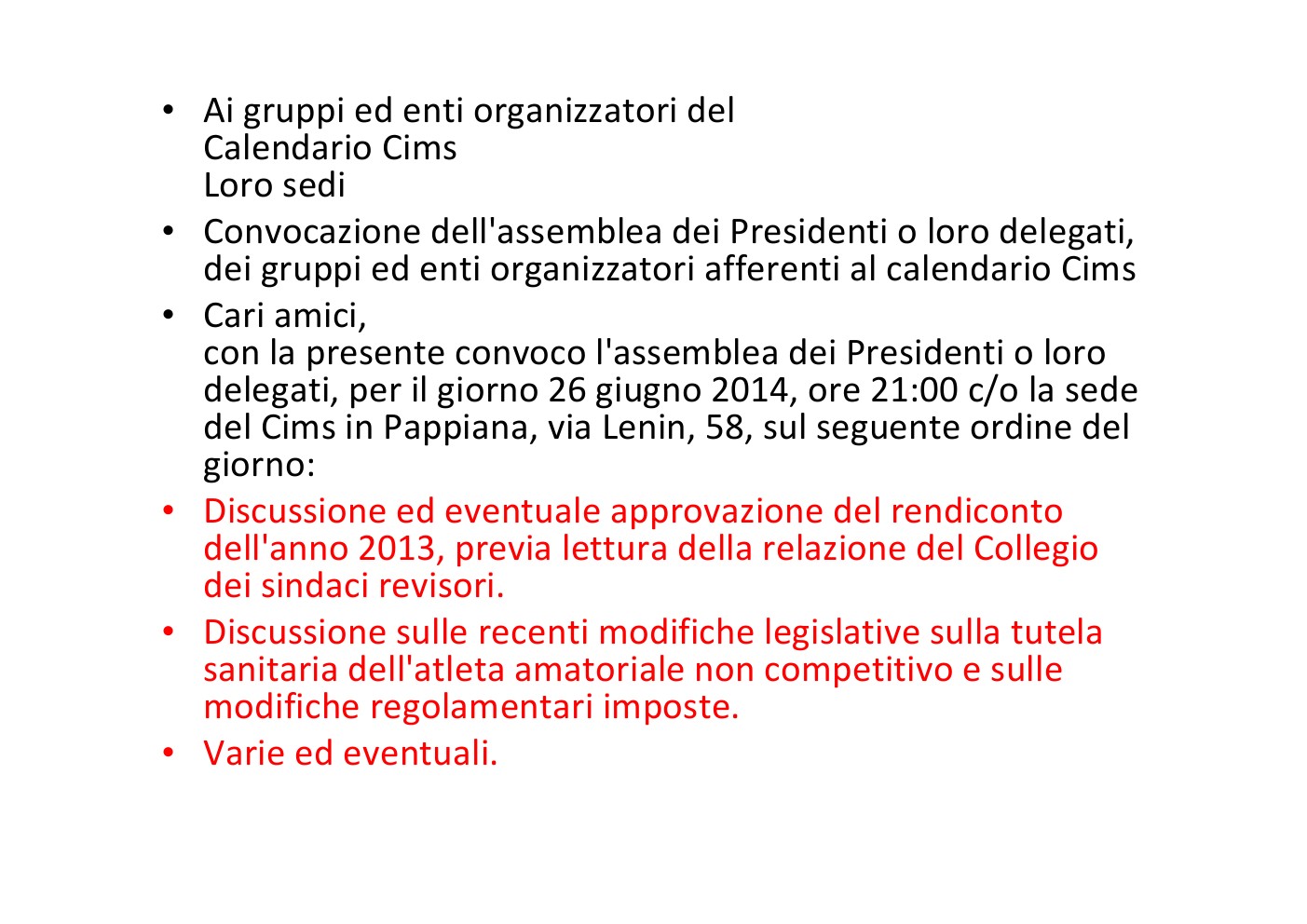 091 del 5 agosto 2014 circa gli eventi sportivi