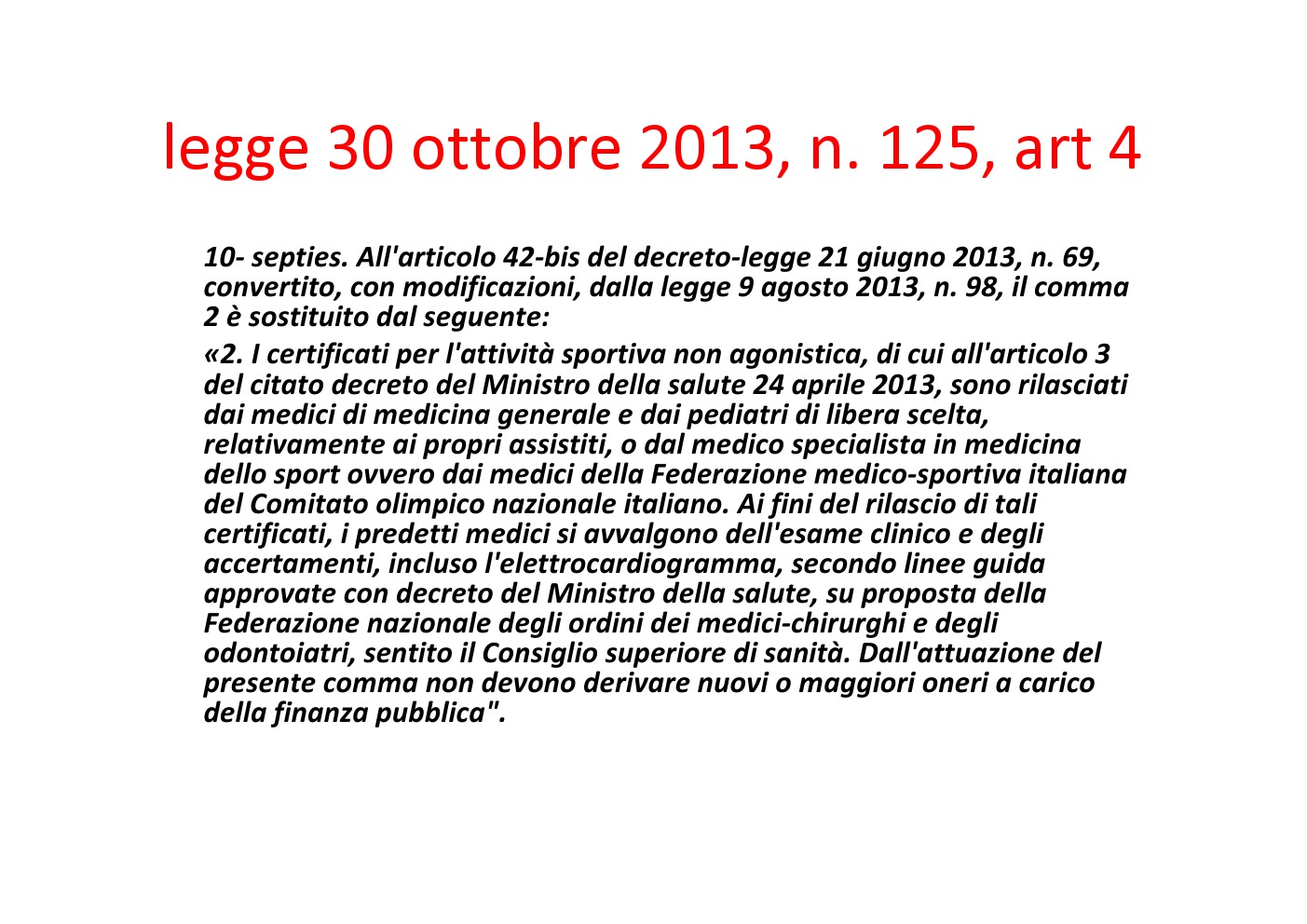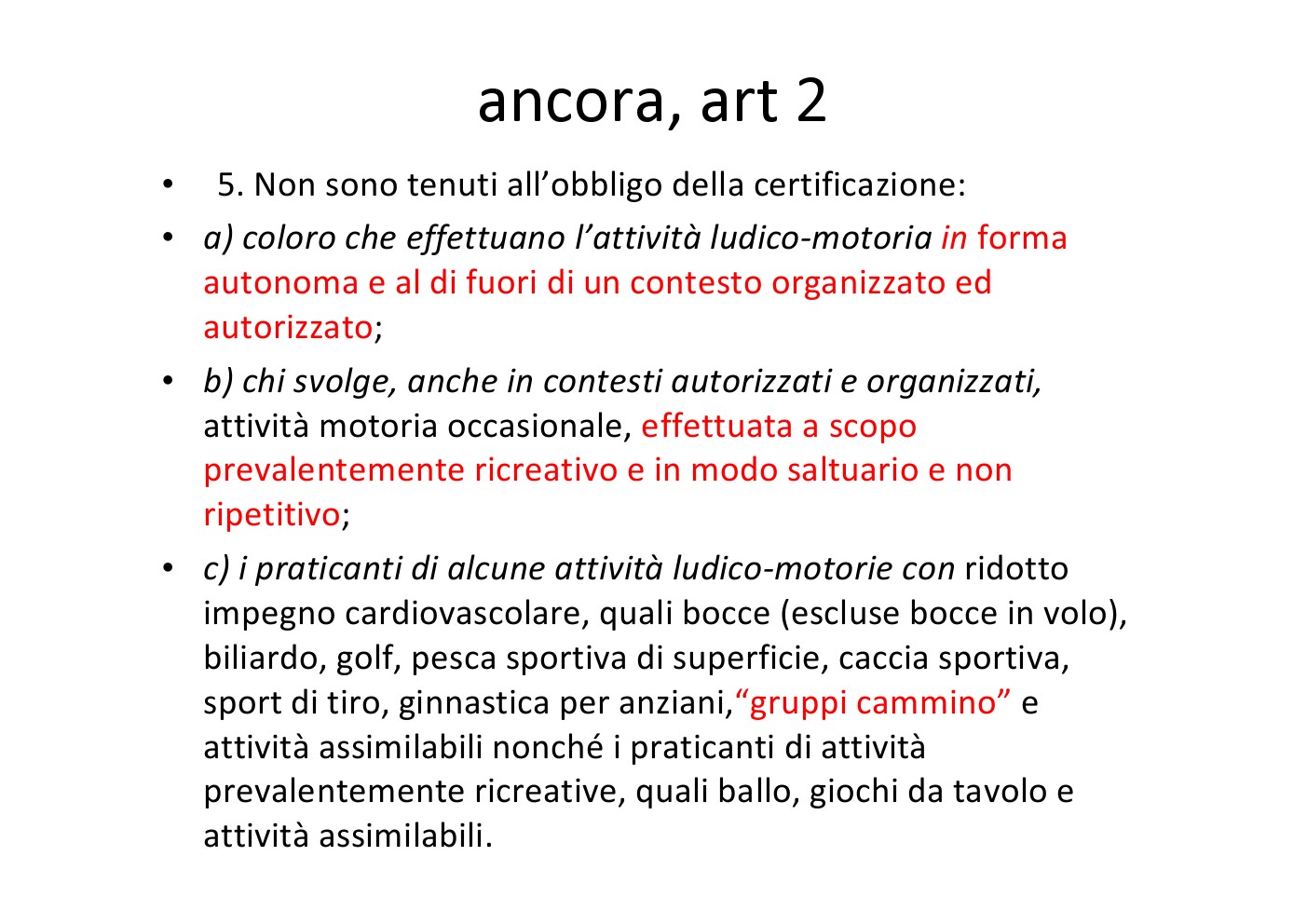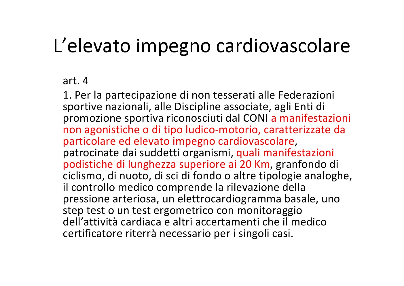 per la certificazione agonistica e non