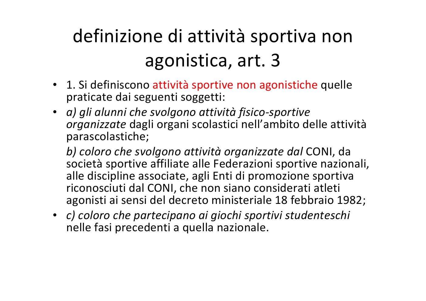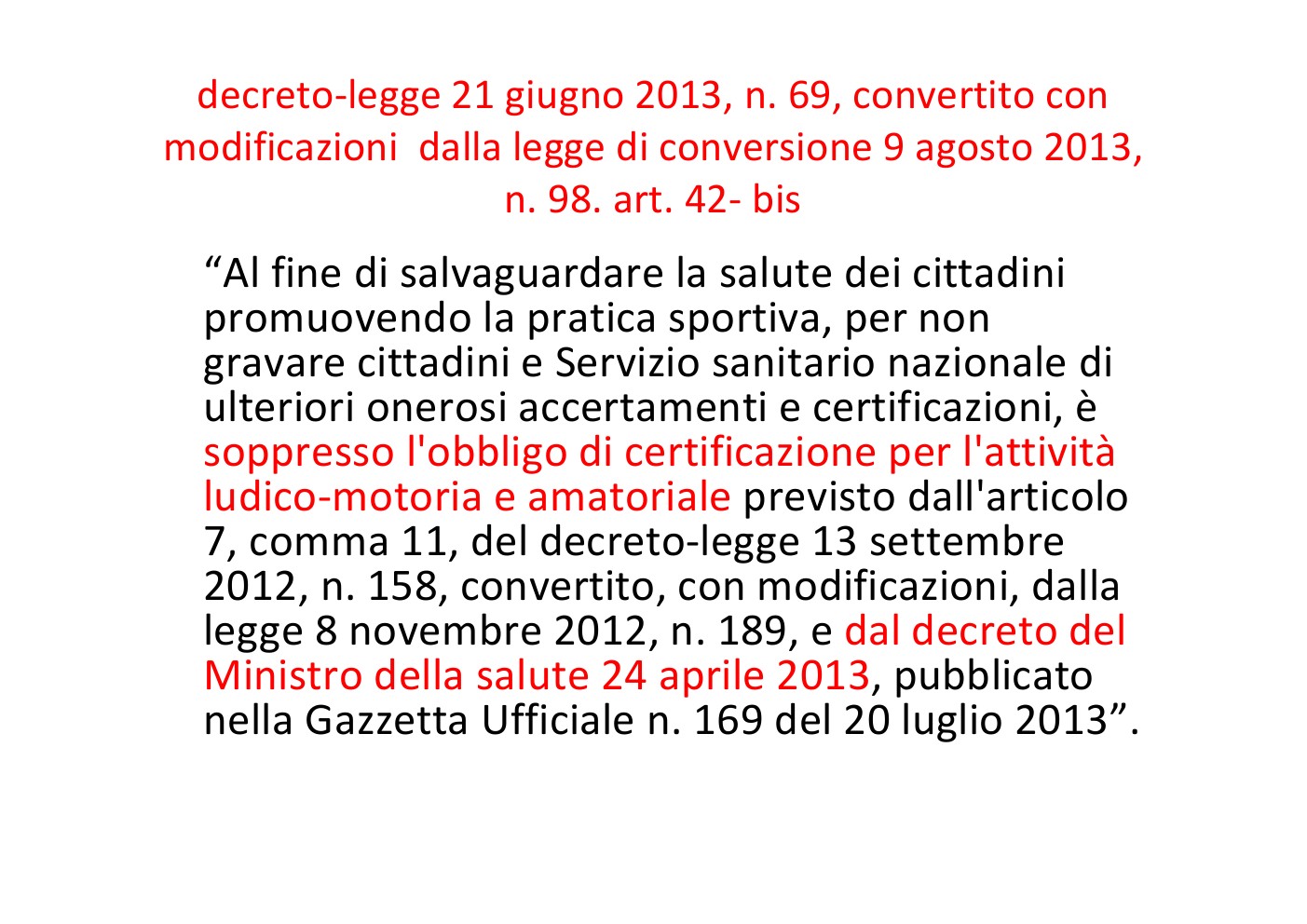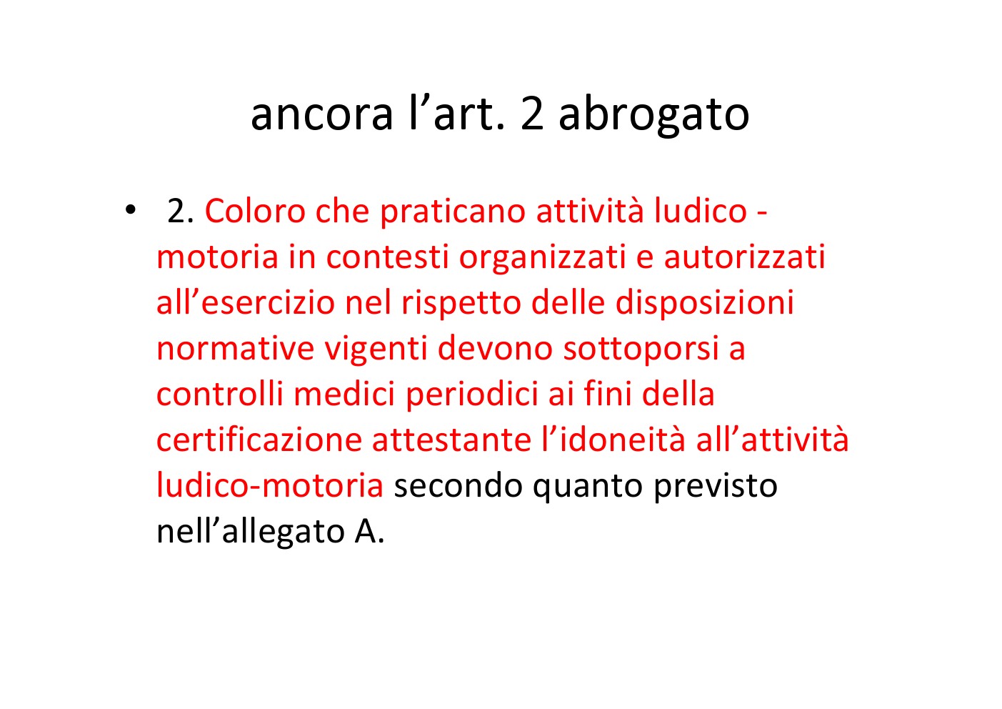 per la certificazione agonistica e non