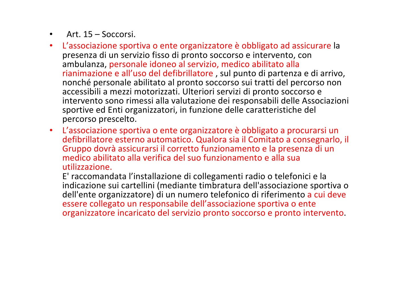 Per prendere contatti con un gruppo DEU per il servizio di soccorso sanitario, gli organizzatori possono rivolgersi al numero 347/6080273 valendosi di medici abilitati alla rianimazione ed all'uso del defibrillatore a costi calmierati